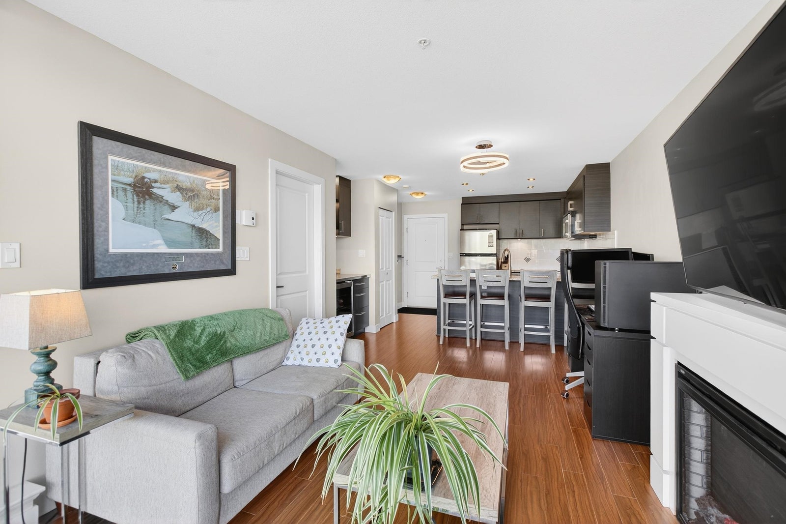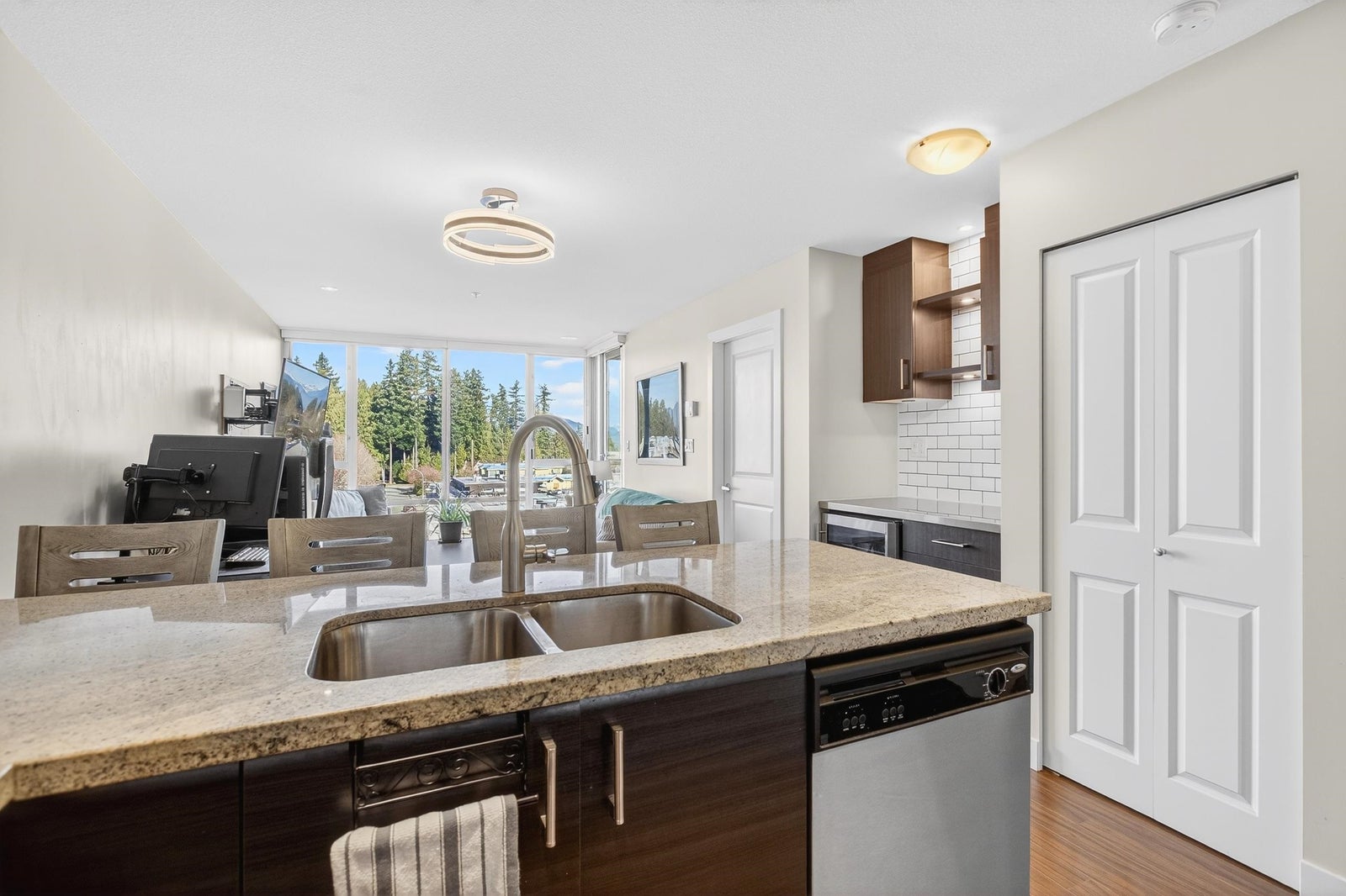 Welcome to Solaris in the heart of Pitt Meadows. This well-appointed one-bedroom home in Unit 502 offers a smart, functional layout with bright living space and an elevated outlook. The open-concept kitchen flows seamlessly into the living and dining area, making it ideal for everyday living or entertaining. Large windows provide great natural light, while the private bedroom offers comfortable separation and generous closet space. Located directly across from the neighbourhood pub, and just steps to shopping, cafés, West Coast Express, and everyday amenities, this home is perfect for first-time buyers, investors, or those looking to enjoy a walkable, central lifestyle in Pitt Meadows.