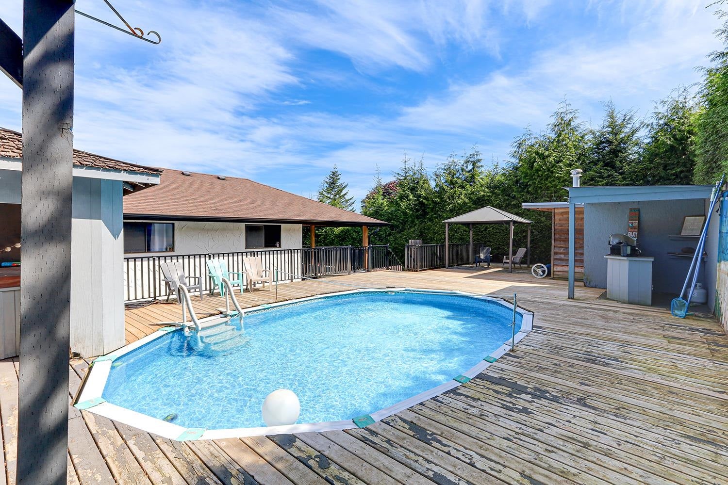 Nestled on a quiet destination street, this 4-bedroom, 3-bathroom, 2,502 sq. ft. home offers an incredible blend of space, comfort, and convenience. Just a short walk to schools, parks, shopping, and transit, this property is perfect for families and entertainers alike. The backyard is a private retreat, featuring extensive decking, a pool, hot tub, and bar area, all designed for ultimate relaxation and entertaining. A large covered deck allows for year-round enjoyment, while mountain views provide a stunning backdrop. Recent updates include freshly painted interior, A/C, glass panel and stair railing, HE furnace, LED lighting, and renovated covered deck and outdoor railings. Don't miss this incredible opportunity—schedule your viewing today!
